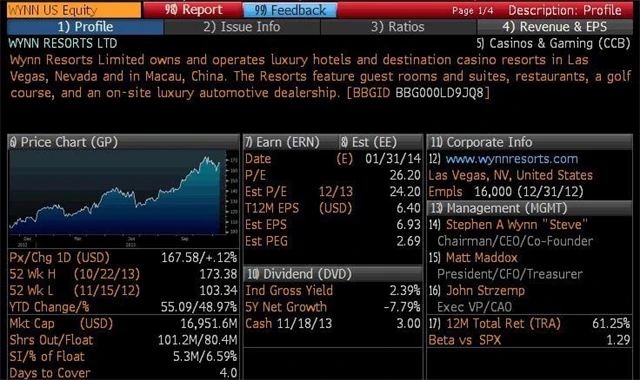 Wynn si také hýčká své akcionáře. Má na tom svůj podíl Steve Wynn, zakladatel a majitel firmy, který vlastní 9 % akcií. Předešlé výplaty zahrnují mimořádnou dividendu 7,50 USD, která loni zdvihla výnos na 6,5 %. Další mimořádná dividenda se zatím nechystá, zvýšení aktuální dividendy by mohlo přijít v následujícím čtvrtletí.