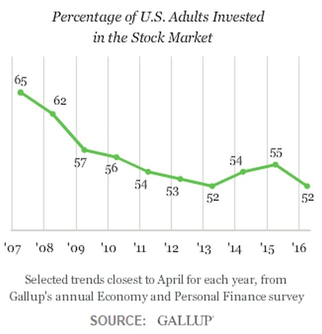 To bychom měli jeden ze zmíněných textů. Druhý z nich, jenž argumentuje proti existenci bubliny na celém akciovém trhu, se opírá o statistiku, již zveřejnil Gallupův ústav. Říká, že akcie nyní vlastní méně amerických domácností než v roce 2007, kdy udeřila finanční krize (tehdy to bylo 65 %, dnes jen 52 %). "Když má akciový trh vyhlídky překvapivě růst po několik let, čekali bychom zdravou dávku pesimismu a to, že značná část lidí se na trhu ještě neangažuje, což je přesně to, co nám říkají čísla od Gallupova ústavu," praví se v textu.