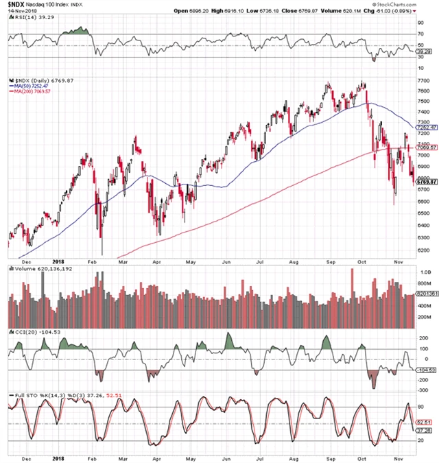 Podobné je to u indexu Nasdaq 100, který navíc zaznamenal ještě hlubší pokles než S&P 500.