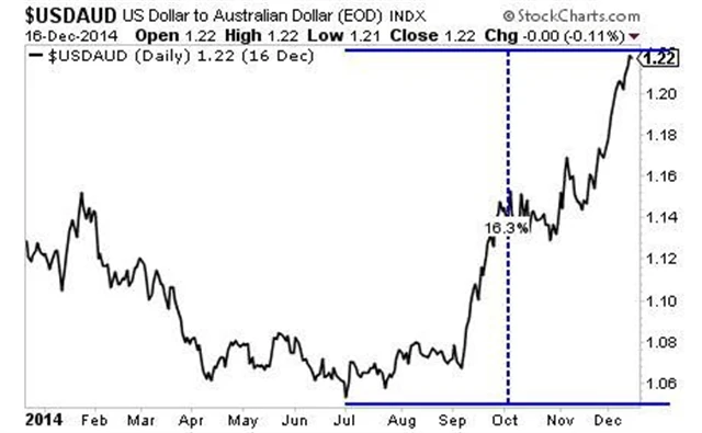 Australský dolar k americkému dolaru za stejné období odepsal asi 16 %.
