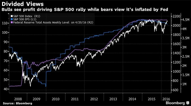 Optimisté tvrdí, že býky na trh dostala efektivní úsporná opatření amerických firem, díky kterým se od konce roku 2009 až donedávna zvyšovala jejich ziskovost. Pesimisté naopak varují, že rally je jen velkou bublinou nafouknutou bezprecedentně uvolněnou měnovou politikou Fedu a dalších centrálních bank. Pravdou je, že průměrný zisk na akcii firem z S&P 500 by letos měl být zhruba dvojnásobný proti roku 2009, na druhou stranu je ale potřeba si přiznat, že vedle drastického snižování provozních nákladů je růst zisků podporován i rekordně nízkými úvěrovými náklady firem danými nízkými sazbami Fedu.
