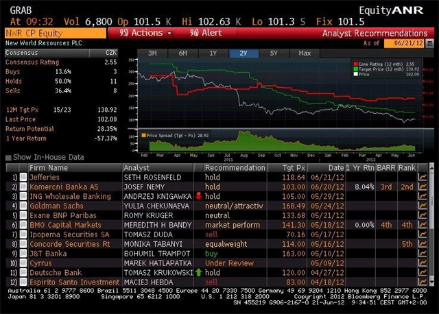 Jaký názor mají na akcie NWR domácí a zahraniční analytici? Jaké jsou jejich dvanáctiměsíční cílové ceny a jak znějí jejich aktuální investiční doporučení? Přehled investičních doporučení pro akcie NWR, jak je shromáždila k 21. 6. 2012 agentura Bloomberg.