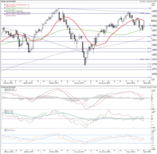 Technická analýza indexů S&P 500, DAX a Stoxx 600.