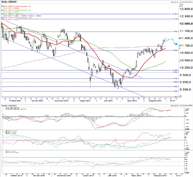 Technické indikátory jsou mírně prorůstové, zároveň ale před indexem stojí dvě důležité úrovně odporu a ROC60 je dost vysoko. Pro následující dny očekáváme tendenci k mírnému růstu. Index je ale zároveň na současných úrovních zranitelný, proto ke konci týdne mohou dominovat prodejci.