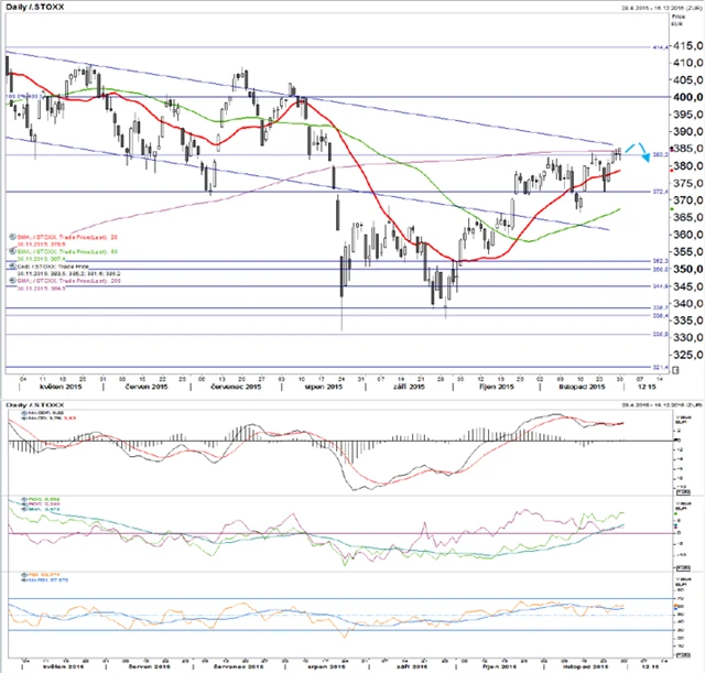 Technická analýza indexů S&P 500, DAX a STOXX Europe 600.