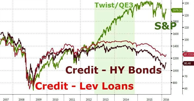Jeff Gundlach předkládá jako argument graf vývoje cen amerických akcií a výnosů rizikových dluhopisů. Jejich korelaci (v tomto případě podle všeho i reálnou, nejen zdánlivou, protože akcie i rizikové dluhopisy mají tendenci posilovat ruku v ruce, když je na trzích nálada nakloněná riziku.