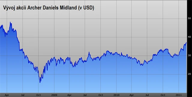 Akcie Archer Daniels Midland se dnes prodávají na Newyorské burze za 15násobek zisků, dividendový výnos činí 1,8 %.