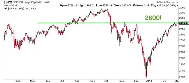 Nejprve ta méně příznivá zpráva. Index S&P 500 se na začátku března vyhoupl nad 2 800 bodů, což je sice hezké číslo, ale od října se mu již hned třikrát nepodařilo tuto hodnotu prorazit. V pondělí 4. března sice otevíral na 2 814 bodech, ale později spadl pod 2 800.