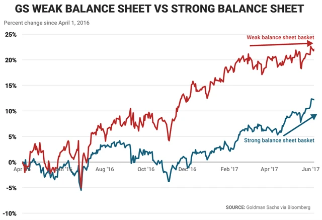 Pokud byste se ale chtěli držet v býčím stádu, na jaké konkrétní akcie nyní sázet? Otázka za všechny prachy. Podle všeho jsou takzvané snadné peníze (easy money) už rozebrané, americká centrální banka pomalu, ale přece zpřísňuje měnovou politiku a sazby v ekonomice by měly postupně růst. To může vyvolat tlak na firmy, které si levně půjčovaly v době po krizi, ale napříště by nemusely zvládat rostoucí úrokové náklady. Investoři v takové situaci u firem oceňují silné rozvahy, tedy dostatek hotovosti a nízké zadlužení.