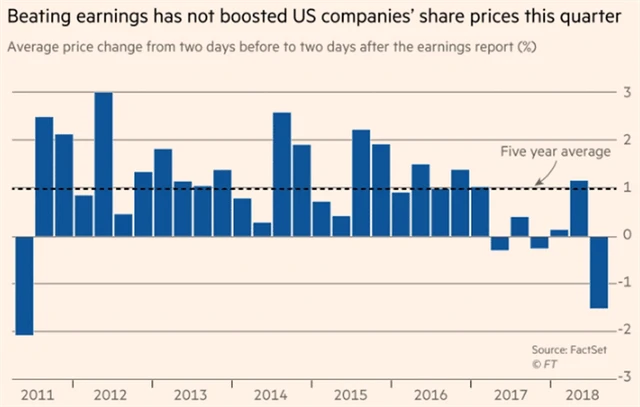 Akciový stratég Binky Chadha z Deutsche Bank v souvislosti s tím vypozoroval, že navzdory lepším než předpokládaným hospodářským výsledkům byly během října pod prodejním tlakem akcie firem, jimž se dařilo před dosažením historického maxima indexu S&P 500, zatímco akcie společností, které před vrcholem zaostávaly, byly během výsledkové sezóny spíše investory "odměňovány".