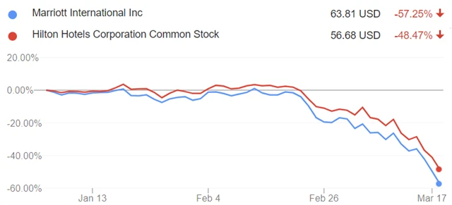Ceny akcií hotelových řetězců, jako je Hilton, podle Ackmana mohou spadnout prakticky na nulu. "Budou zavřené všechny hotely v zemi. Pokud se nepodaří epidemii zastavit, mohou se hotelové řetězce skončit. Jejich byznys ani žádný jiný nemůže vydržet rok a půl bez tržeb. A to by se stalo, kdyby se přístup politiků nezměnil," varoval muž, který se svým fondem právě v akciích Hilton drží významnou pozici. Akcie společností Hilton i Marriott odepsaly jen v březnu přes polovinu hodnoty.