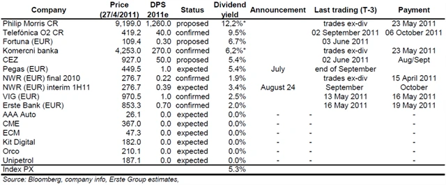 Burza Praha: Přehled vyplácených a očekávaných dividend v roce 2011