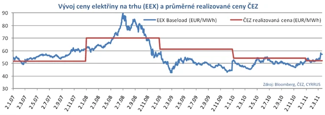Akcie ČEZ byly v posledních měsících pod tlakem nepříznivého vývoje cen elektrické energie a rostoucí nejistoty budoucího vývoje (zdanění FV a emisních povolenek apod.). V posledních týdnech se nicméně objevilo několik potenciálních pozitivních katalyzátorů pro akcie ČEZ. Ceny elektřiny byly na přelomu 2010/11 podpořeny australskými povodněmi a následně v březnu 2011 důsledky extrémně silného zemětřesení v Japonsku.