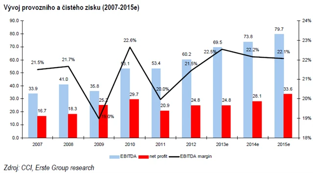 Rok 2014 by mohl být mnohem příznivější. Pokud se podaří finalizovat všechny započaté projekty podle plánu, CCI by měla otevřít až 70 nových kinosálů, což by znamenalo růst kapacity o 7,1 % meziročně. To by mělo negativní dopad na potenciální výplatu dividendy (první výplatu dividendy i proto očekáváme až ze zisku za rok 2015).