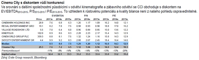 Na základě upraveného DCF modelu jsme zvýšili cílovou cenu pro akcie Cinema City z 27,5 PLN na 32,5 PLN. Zároveň jsme zvýšili doporučení z "redukovat" na "akumulovat".