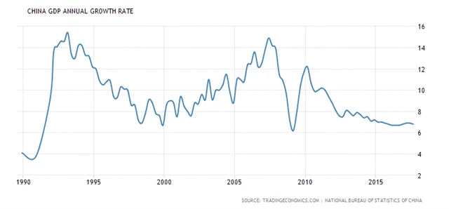 Na makroekonomické úrovni čínská vláda přesouvá pozornost od snahy zvyšovat míru růstu k podpoře kvality růstu, a hlavně pak k dosažení vyváženého rozvoje. Čínský hospodářský růst by se měl v příštích letech zmírnit, ekonomika se přesouvá od investic a vnější poptávky k domácí spotřebě.