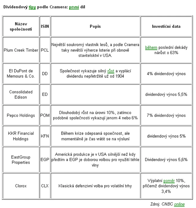 Cramer: 13 tipů pro dividendové investory