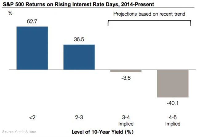 Historicky americké akcie dokázaly posilovat i v době růstu sazeb, dokud 10letý výnos setrvával pod určitou hladinou. Za současných podmínek jí podle Credit Suisse je úroveň 3,5 %.