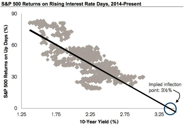 Od roku 2014 akcie zpevňovaly a výnos se držel pod 3 %. Po překonání 3,5% hladiny výnosu 10letých vládních bondů USA to s akciemi v Americe podle banky ale může jít z kopce.
