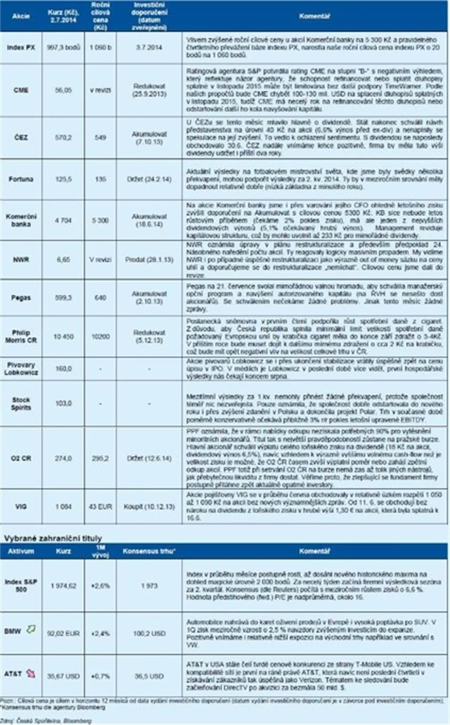 ČS: Červencová strategie pro české akcie (3. 7. 2014)