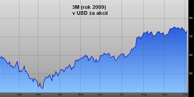 KOUPIT Nejlepší čas nakupovat akcie firmy byl v březnu, kdy se akcie obchodovaly za směšných 41 dolarů. Cena byla tak atraktivní proto, že 3M je jedním z nejspolehlivějších průmyslových firem ve Spojených státech, a kupovat takovou akcii za pouhý desetinásobek předpokládaného zisku na akcii za rok 2009, to byla zkrátka trefa. 3M oznámila za 2. čtvrtletí pokles tržeb o 13 procent, ovšem navýšila odhad na celý rok. Přesto ovšem akcie zůstává dlouhodobě zajímavá pro nákup.
