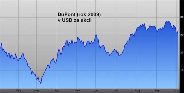 Chemický gigant prochází těžkým obdobím snižování nákladů, které má Dupontu pomoct zvládnout dopady krize. Ovšem zotavení ekonomiky se už, zdá se, promítlo do ceny akcie, která od začátku července narostla o více než 30 procent. Firma navíc možná bude muset hýbat s dividendou (dosud 1,64 dolaru, tedy cca 5 procent ceny akcie), pokud se před finálním zotavením ekonomiky situace ještě zhoupne dolů.
