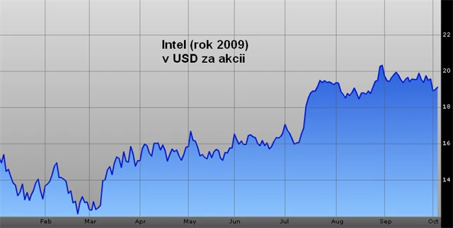Dominantní hráč na trhu s mikroprocesory. Tento sektor těží z nutnosti obnovovat IT technologie během trvající krize. Intel je v dobré kondici, vyplácí v rámci technologického sektoru hodně zajímavou dividendu 56 centů, ovšem akcie jsou v tuto chvíli v poměru k předpokládanému zisku na akcii za letošní rok hodně drahé (34:1).