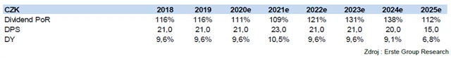 Podle Erste se akcie O2 Czech Republic obchodují na příznivých krátkodobých násobcích s průměrným odhadovaným téměř 10% dividendovým výnosem. FCF výnos pak dosahuje bezmála 9 % i se zahrnutím dopadů 5G aukce.