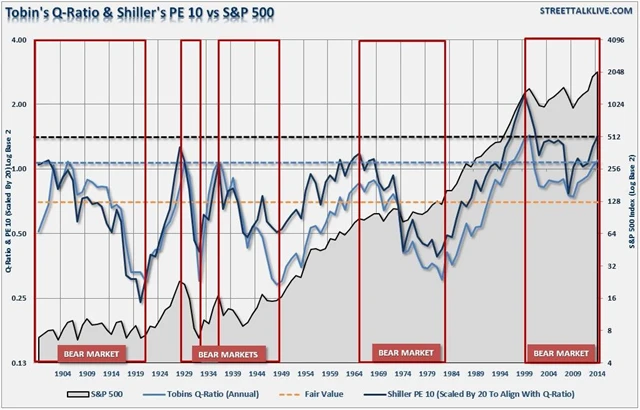 Pokračující růst cen amerických akcií zvyšuje obavy z případné reakce investorů na možná budoucí slabší hospodářská čísla. Jedním z měřítek, která lze použít pro vyjádření toho, jak drahé americké akcie jsou, je poměr jejich ceny k hlášeným upraveným ziskům. Před třemi lety byli investoři ochotni zaplatit za dolar upraveného zisku firem z S&P 500 13,50 USD, nyní jsou ochotni za stejný upravený zisk zaplatit 18 USD. To, že aktuálně akcie opravdu nejsou levné, dokazují i Shillerovo P/E (cyklicky očištěný ukazatel P/E) či takzvaný ukazatel Q.