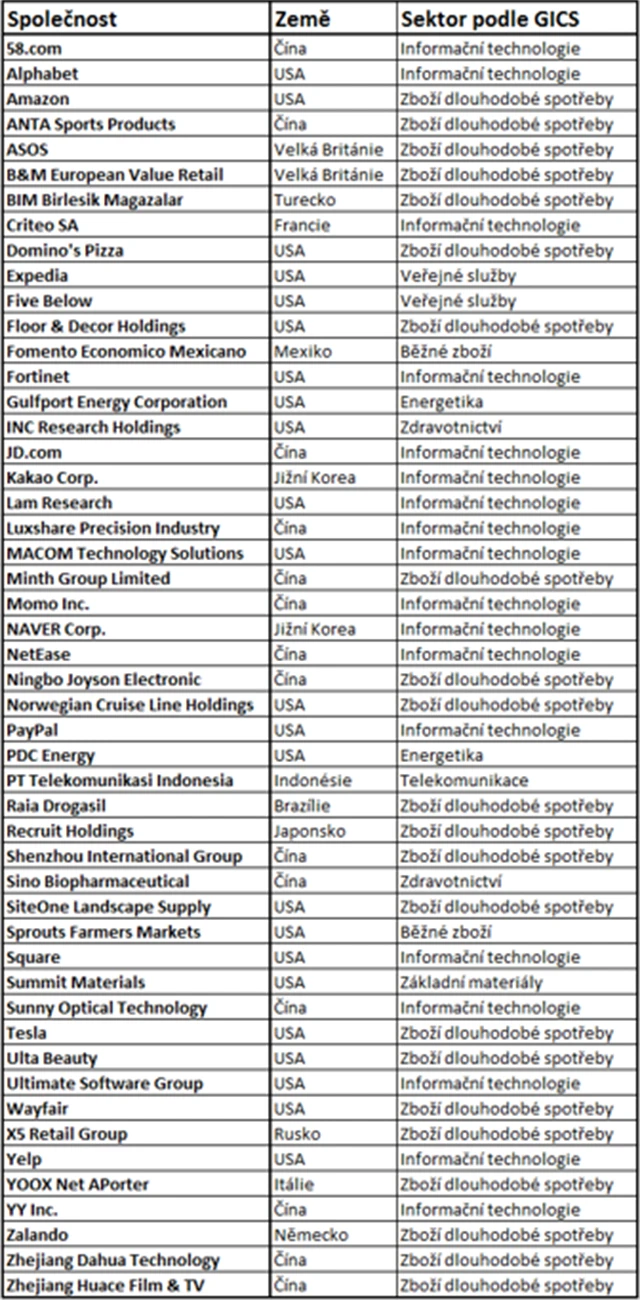 Výběr se nevztahuje na firmy s tržní kapitalizací pod 2 miliardy dolarů a vyloučeny jsou i ty společnosti, které se nacházejí v horní pětině firem podle výše poměru EV/S (tržní kapitalizace + dluh + prioritní akcie – peníze a peněžní ekvivalenty, to vše v poměru k ročním tržbám) v regionu. Jde o to, že jejich ocenění je na vysoké úrovni, a nemá tak již velký růstový potenciál.