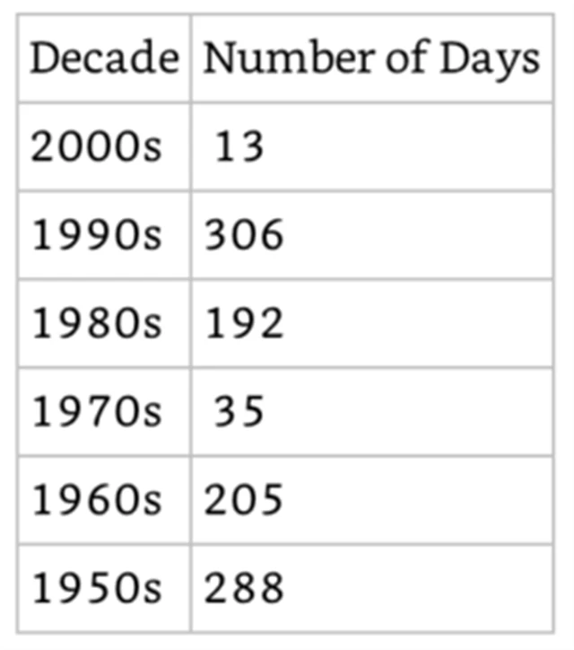 Skutečnost tak jednoduchá není. Od roku 1950 se index S&P 500 dostal na nové historické maximum ve více než 1 100 případech. To znamená zhruba v 7 % obchodních dnů (v průměru každý 15. obchodní den). V tabulce jsou maxima seřazena podle toho, kolik jich index překonal v jednotlivých dekádách po roce 1950.