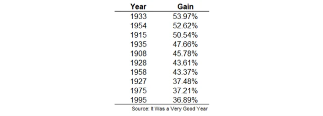 Při pohledu na nejvýnosnější roky v historii indexu Dow Jones Industrial Average nejspíše každého napadne, že něco podobného již není možné. Na nejvýnosnější roky na akciovém trhu v USA se ve své knize It Was a Very Good Year zaměřil známý investor a autor několika knih o investování Martin Fridson.