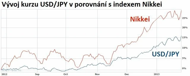 *Britům se od roku 2008 podařilo srazit kurz libry o čtvrtinu, aniž by si toho někdo výrazněji všiml. Raketové oslabení měny zažívá i Japonsko, jen oslabil vůči americkému dolaru za poslední půlrok zhruba o 15 % *(údaje k 25. lednu 2013 – pozn. red.). V reakci na oslabení jenu naopak výrazně posílila japonská burza, index Nikkei přidal za stejné období 29 %.