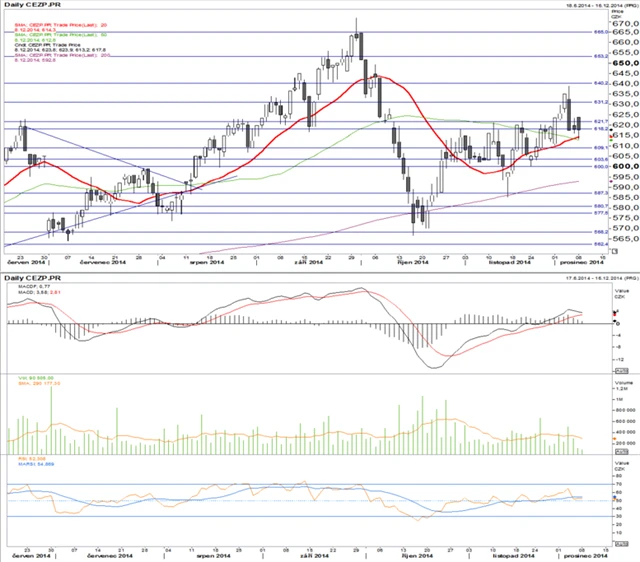 Komerční banka a ČEZ: České blue chips pohledem technické analýzy (9. 12. 2014)