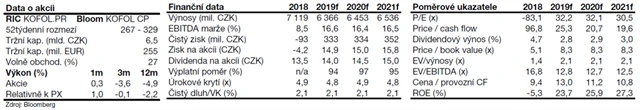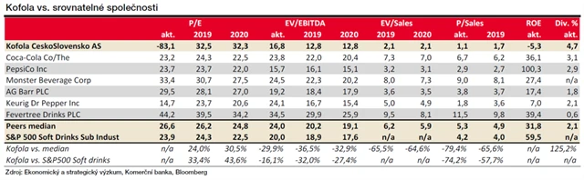 Ze sektorového srovnání vychází ocenění akcií Kofoly ČS jako mírně nižší (EV/EBITDA pro roky 2019 a 2020 je 12,8 a 12,7, zatímco srovnatelné firmy vykazují úroveň 20,3 a 19,1). Kofola navíc nabízí nadprůměrný dividendový výnos.