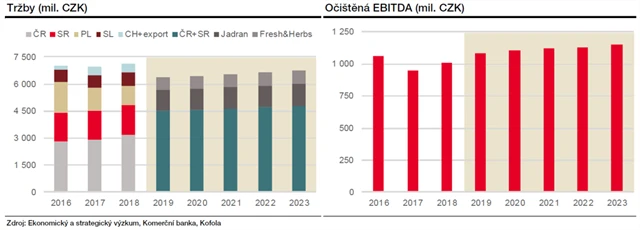 Celkové tržby skupiny Kofola ČS loni dosáhly 7,1 miliardy Kč, očištěný zisk EBITDA mírně překonal hranici jedné miliardy korun. "Očekáváme, že díky divestici problematické společnosti HOOP Polska se management bude moci více věnovat perspektivnějším oblastem, například právě jadranskému regionu a dalšímu rozvoji segmentu fresh & herbs. Díky tomu by měly do roku 2023 tržby růst ročně v průměru o 1,4 %," napsal analytik z Komerční banky.