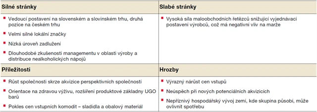 Mezi nejvýznamnější rizika prognózy se řadí změny cen vstupních surovin, jako jsou sladidla a obalové materiály. Stejně tak hraje velkou roli i akviziční aktivita firmy.