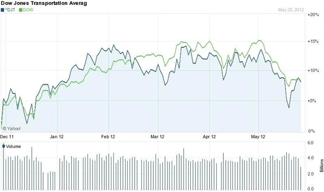 Známý investor Richard Russell varuje, že akcie poslaly investorům důležitý medvědí signál. Index DJIA byl na maximu 1. května, ovšem index dopravních firem (DJ Transportation Average) toto maximum nepotvrdil svým maximem. Oba indexy pak zamířily "na jih" a prolomily dubnová minima. "Medvědí trh začíná, a věřím tomu tím spíše, že si toho naoko nevšímají analytici sledující americké akcie," má jasno Russell.