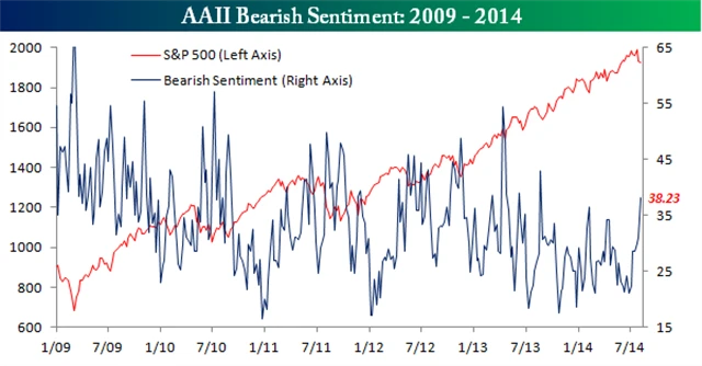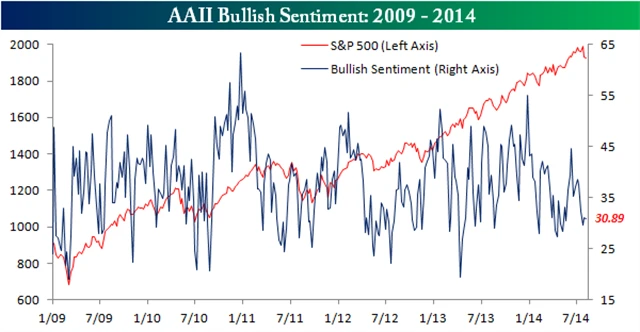 Podíl medvědů mezi americkými individuálními investory vzrostl v předchozím týdnu na téměř roční maximum. Býků sice neubývá, ale nepříznivý sentiment se podepisuje na velké přeprodanosti trhu. Pokud by ale mělo dojít k první alespoň 10% korekci za poslední tři roky, je potřeba se připravit na mnohem větší posun sentimentu.