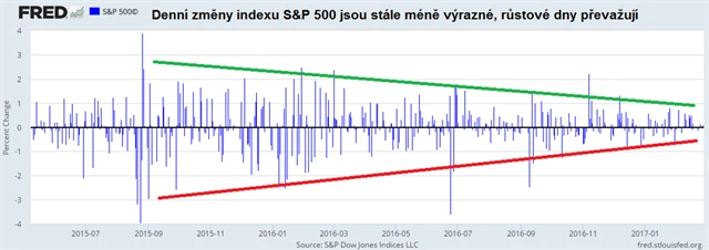Taková klidná voda, co navíc už hezkých pár týdnů teče lehce do kopce. Seznamte se, toto je americký akciový index S&P 500, který se za den o více než procento už skoro zapomněl posouvat. Že by klid před bouří? Možná, jen nikdo nevíme, kdy a kde se poprvé blýskne.