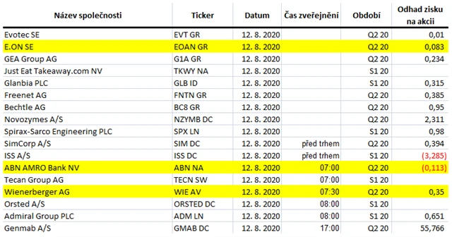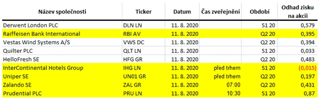Poznámka: Odhady analytiků jsou aktuální k 6. 8. 2020.