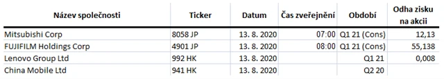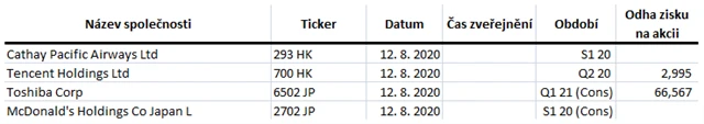 Očekávané výsledky světových firem v týdnu od 10. srpna