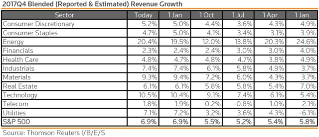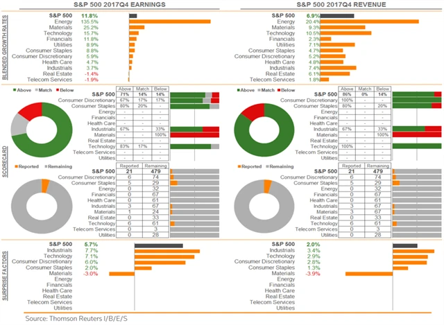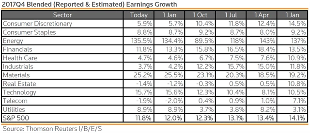 Jak se vyvíjejí odhady růstu či poklesu zisků a tržeb za 4Q2017?