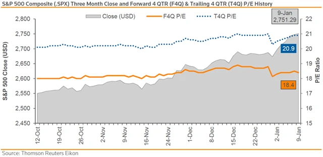 Které světové firmy představí výsledky hospodaření za uplynulý kvartál v týdnu od 15. ledna a jaké zisky v rámci indexu S&P 500 a od jednotlivých společností očekávají analytici oslovení agenturami Thomson Reuters a Bloomberg? (12. 1. 2018)