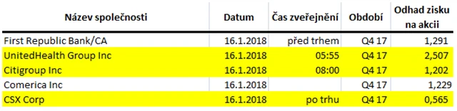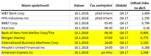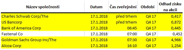 Poznámka: Odhady analytiků jsou aktuální k 11. 1. 2018.