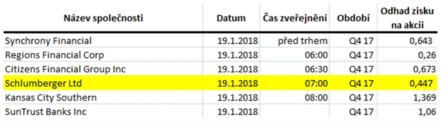 Očekávané výsledky světových firem v týdnu od 15. ledna (12. 1. 2018)
