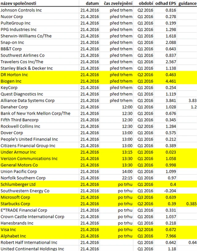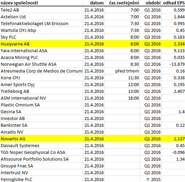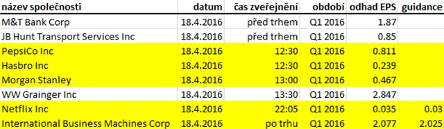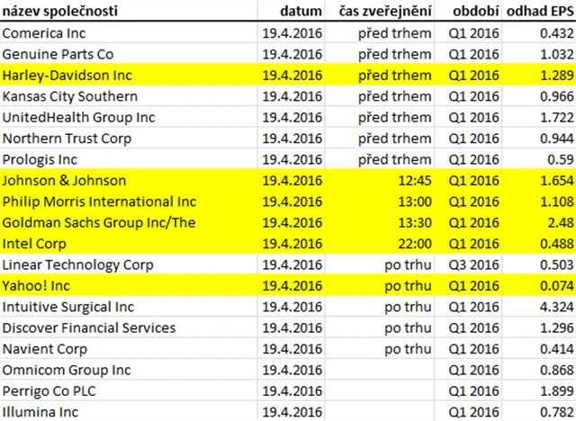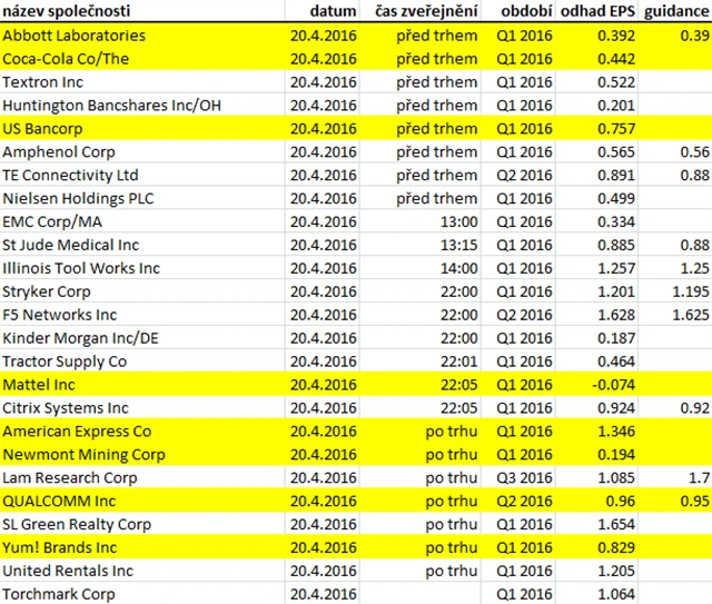 Očekávané výsledky světových firem v týdnu od 18. dubna (15. 4. 2016)