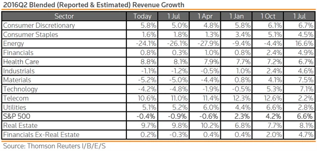 Jak se vyvíjely odhady růstu či poklesu tržeb firem z S&P 500?