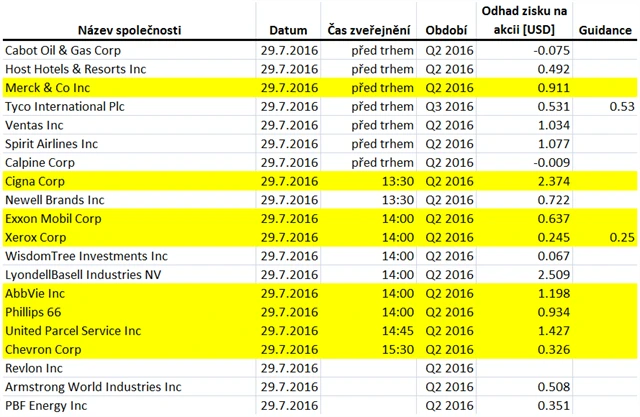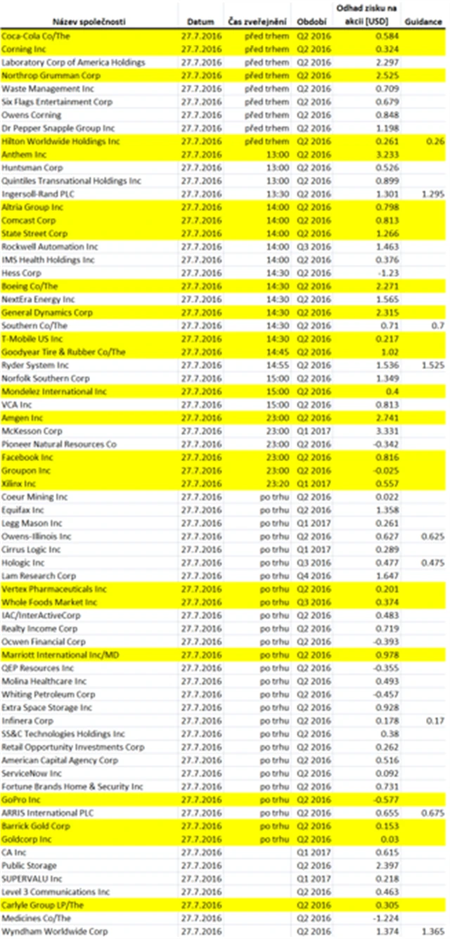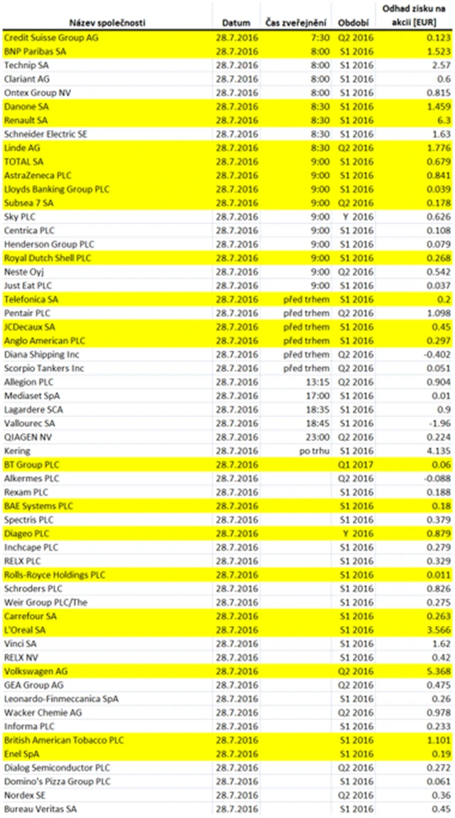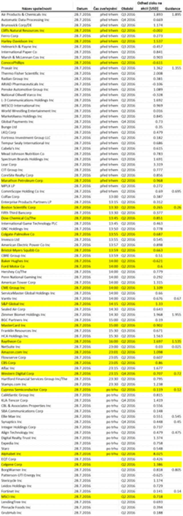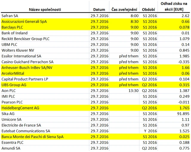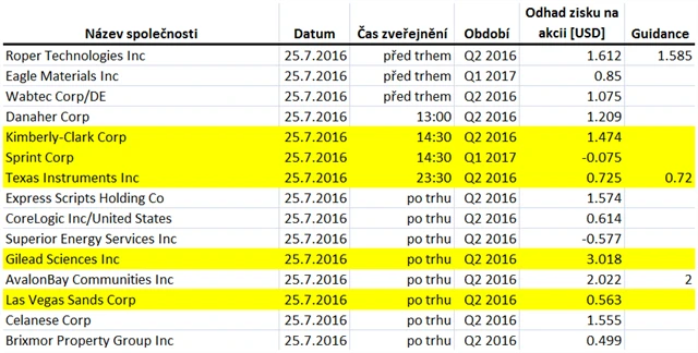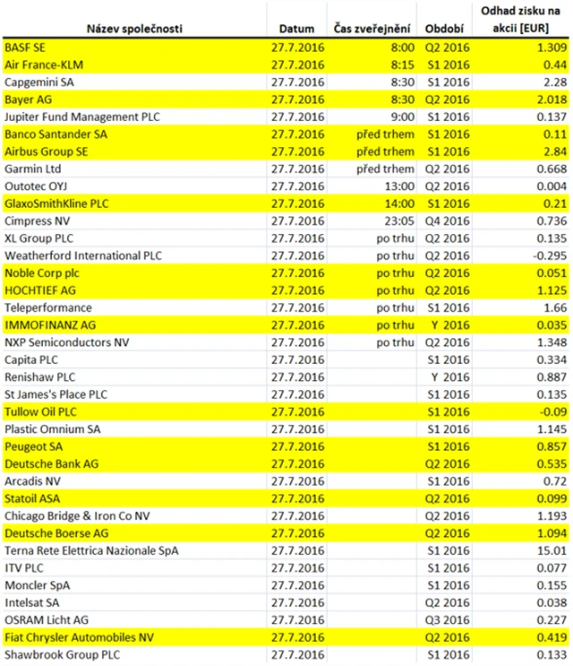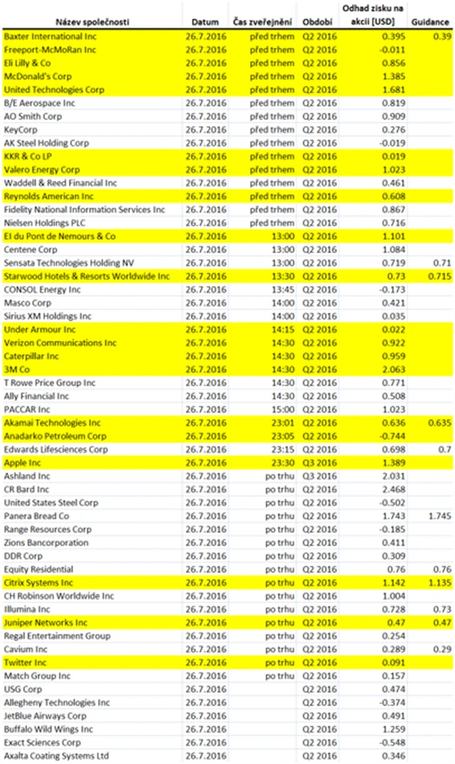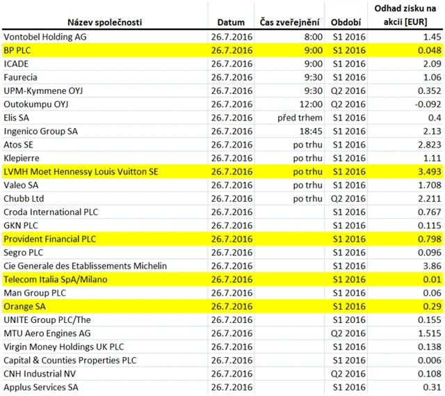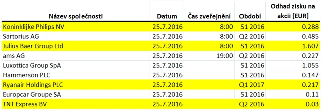 Očekávané výsledky světových firem v týdnu od 25. července (22. 7. 2016)