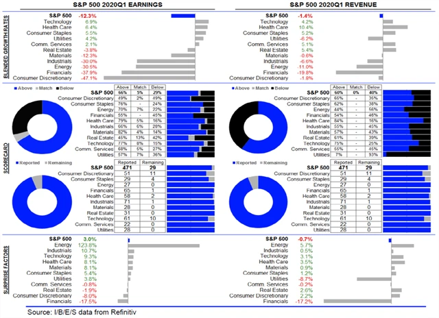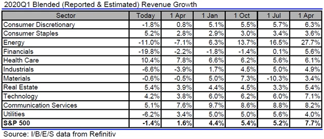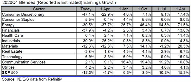 Jak se vyvíjejí odhady růstu či poklesu zisků a tržeb amerických firem za 1Q2020?